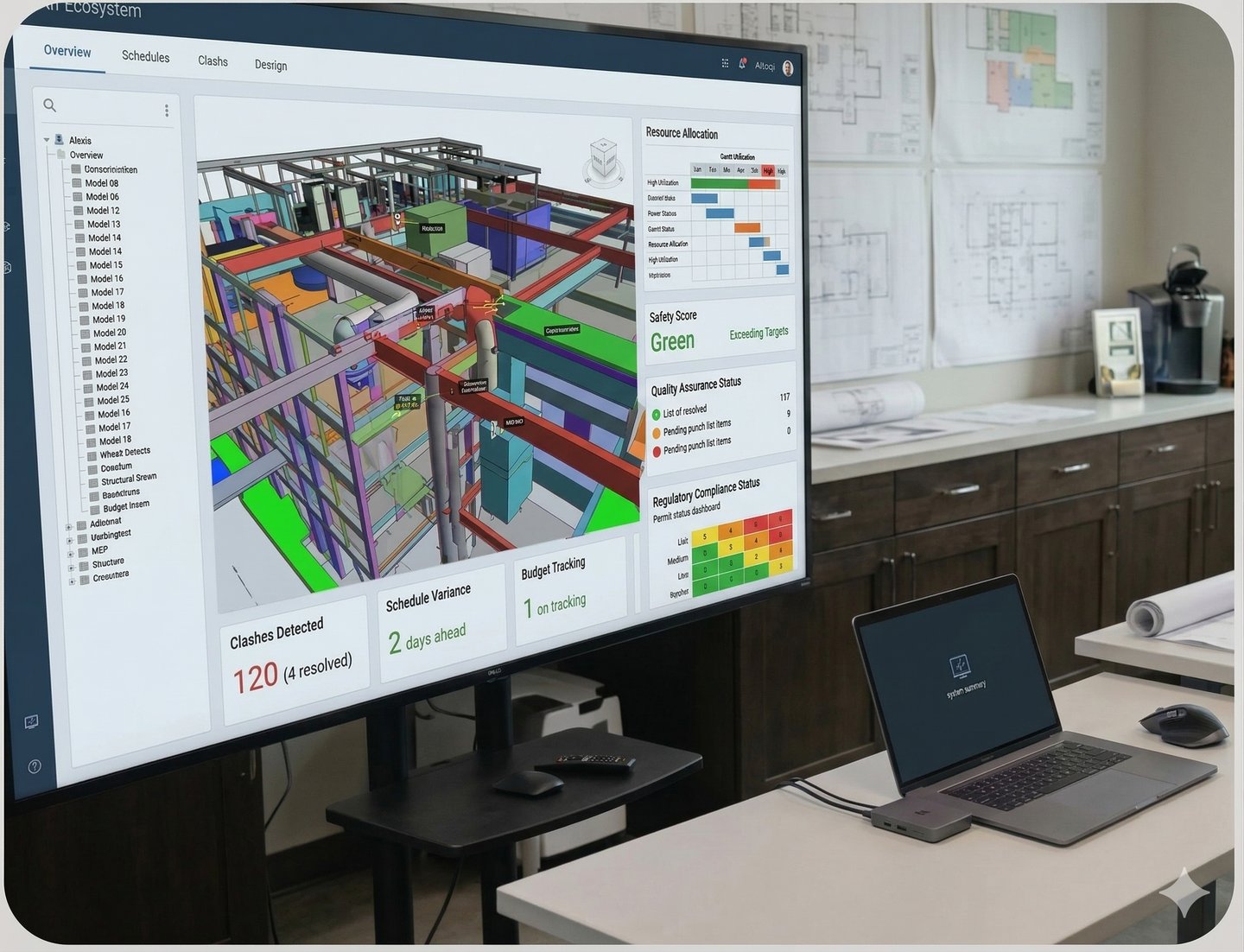 Compatibilização em BIM: Através do ecossistema AltoQi, sobrepomos todas as disciplinas para identificar e resolver conflitos antes mesmo da obra começar.