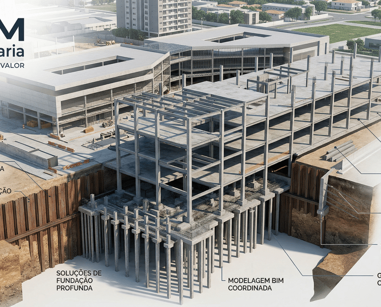 Fundações e Contenções: Análise técnica precisa para garantir a estabilidade e a segurança do solo e da base da edificação.